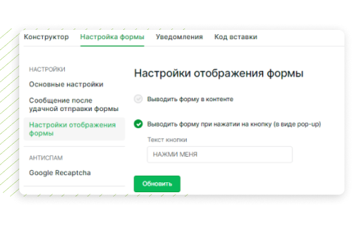 Кодты орнатқаннан кейін бетте модаль терезесінде пішінді ашатын түйме пайда болады