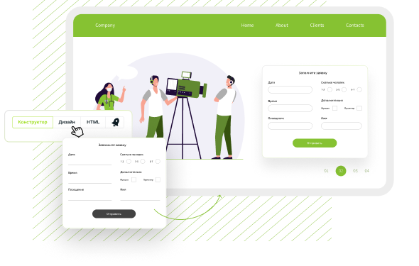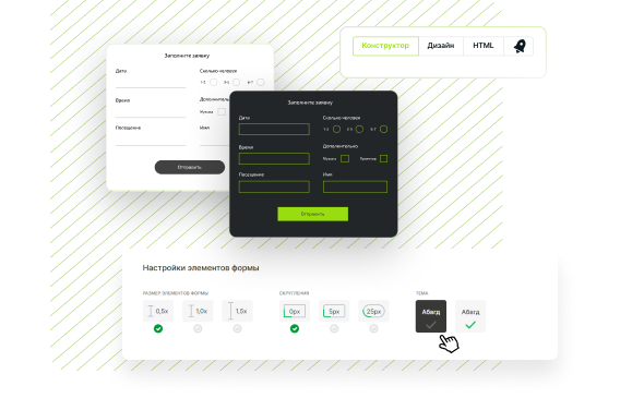 Дизайн titleтарының бірін таңдап, өрістерді дөңгелектеу параметрлерін, түймелердің түстерін және элементтердің орналасуын орнатыңыз. Кадрларды, түстерді, фондарды және басқа параметрлерді сайттың фирмалық стиліне сәйкес реттеңіз