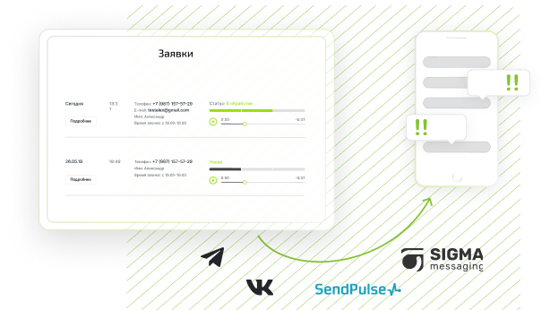 Нақты уақыттағы өтінімдер туралы хабарламалар алу үшін мессенджерлерге, әлеуметтік желілерге, SMS және электрондық хаттарды жіберу қызметтеріне Деректерді жіберуді теңшеңіз