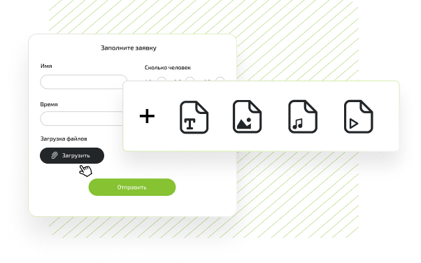 Мәтіндік файлдарды, музыканы, imageтерді, бейнелерді жүктеу мүмкіндігімен формалар жасаңыз. Qform ішіндегі клиенттік файлдармен жұмыс жасаңыз немесе оларды ыңғайлы жерге жіберіңіз