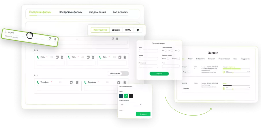 Конструктор кез-келген сұрақтар мен өрістермен сүйреп апару принциптері бойынша, жауапқа байланысты логиканың тармақталуын реттей отырып