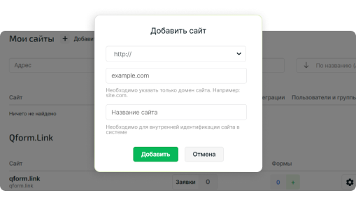 QForm-ға тіркеліп, веб-сайтыңызды қосыңыз