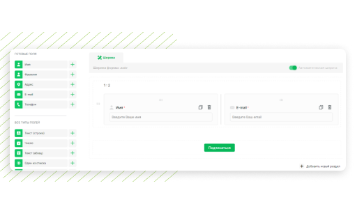 Ақпараттық бюллетеньге жазылу формаларын жасаңыз және келушілердің электрондық пошталарын тарату тізімдеріне немесе CRM QForm-ға жинаңыз. Пішінді ыңғайлы конструкторда реттеңіз және оны кез келген сайтқа бірнеше қарапайым қадаммен салыңыз