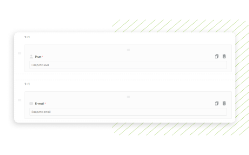 Конструктор режимінде сүйреңіз виджеттер аты , E-mail. Оларды міндетті түрде толтырыңыз