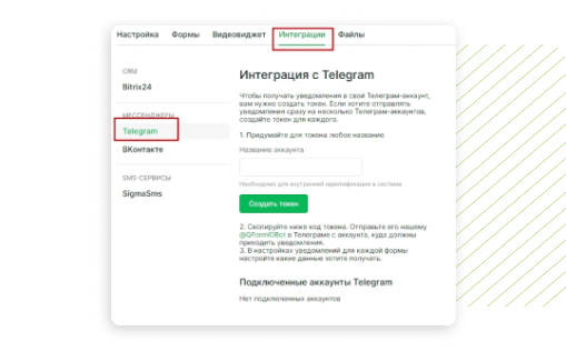 «Хабарландырулар» қойындысының «Telegram параметрлері» бөлімін ашыңыз