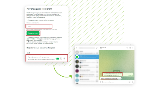 Кодты орнатқаннан кейін Telegram-ға жіберілген деректер бар бетте пішін пайда болады.