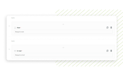 Контактілерді жинау үшін сүйреңіз виджеттер аты , E-mail . Оларды міндетті түрде толтырыңыз