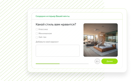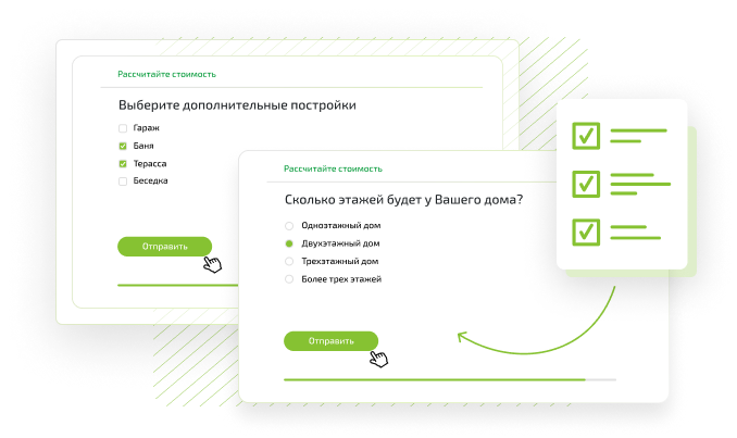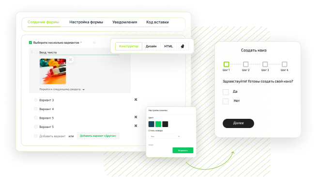 Qform сайтына арналған квиз сервисі сіздің кез келген сұрауларыңыз үшін интерактивті нысанды жасайды. Квиз-бұл аудиторияны өзара әрекеттесуге, таңдауды анықтауға және олардың қажеттіліктерін зерттеуге көмектесетін ыңғайлы веб-құрал. Келуші сұрақтарға жауап береді және өтінімді кіріс деректерімен қалдырады