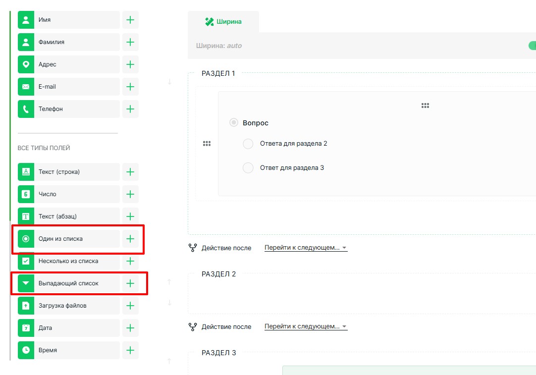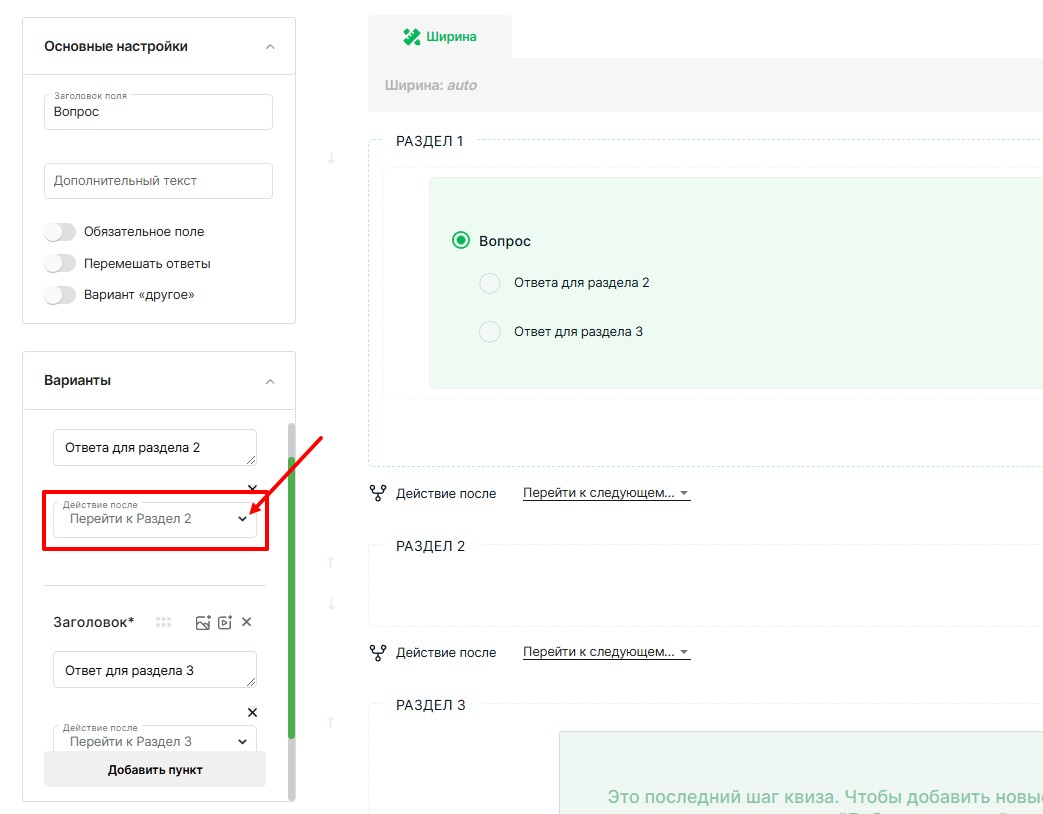 Пайдаланушы жауаптары негізінде бөлімдер арасындағы ауысулардың логикасын орнатыңыз.