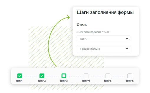 Дизайн режиміне өтіңіз, өрістердің қажетті санын қосыңыз және конфигурациялаңыз. Қадамдық пішінді алу үшін әр қадам үшін бөлек бөлім жасаңыз