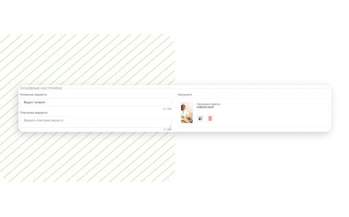 Виджетті орнату келесідей көрінеді:Виджетті атаңыз және жүктеп салу өрісіне бейне файлды тіркеңіз. Қажет болса, виджет сипаттамасын қосыңыз
