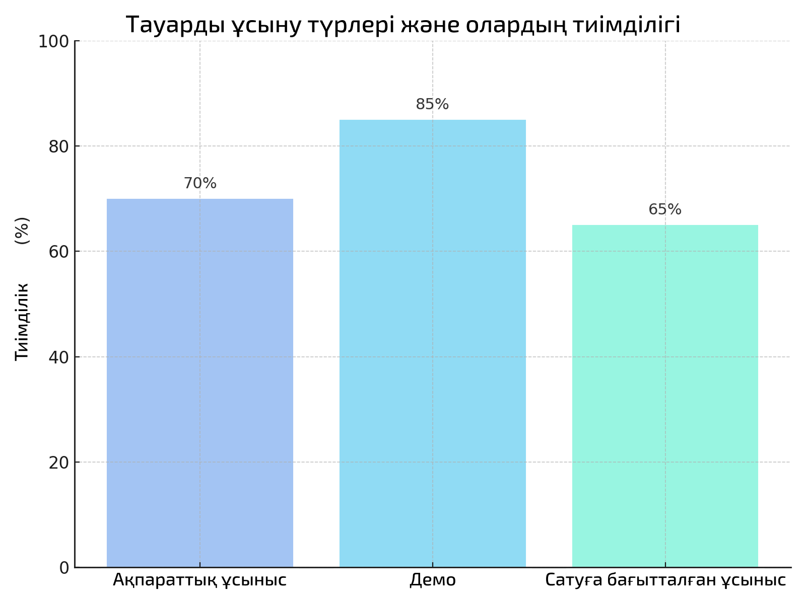 Мысал: онлайн электроника дүкені qform басты бетінде жаңа смартфонды көрсететін бейне виджетті іске қосты. Бейнеде шолушы негізгі мүмкіндіктер туралы айтады, соңында "сатып алу"батырмасы пайда болады. Виджет іске қосылғаннан кейін өнім бойынша өтінімдерге айырбастау өсті — пайдаланушылар өнімді бірден көзбен көре алды.