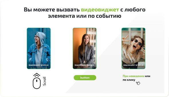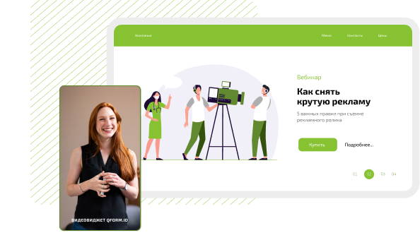 Аудиториямен әдеттен тыс форматта сөйлесіп, олардың назарын аударыңыз. Бизнесіңіз туралы сөйлесіңіз, бейне шолуды бөлісіңіз немесе хабарландыру жіберіңіз. Веб-сайтқа бейне қосуға арналған qform виджеті-бұл интуитивті басқару, кез-келген сұрауларға арналған параметрлер және көріністер мен шертулер туралы толық талдау